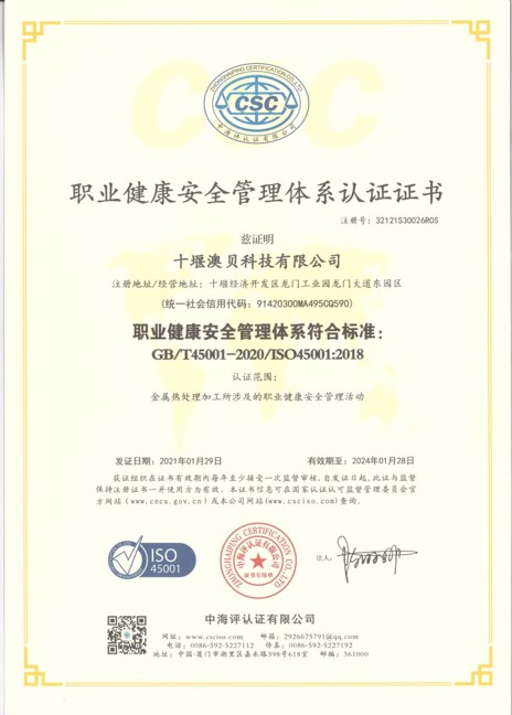2021年1月首次通过GBT45001-2020/ISO45001-2018体系审核