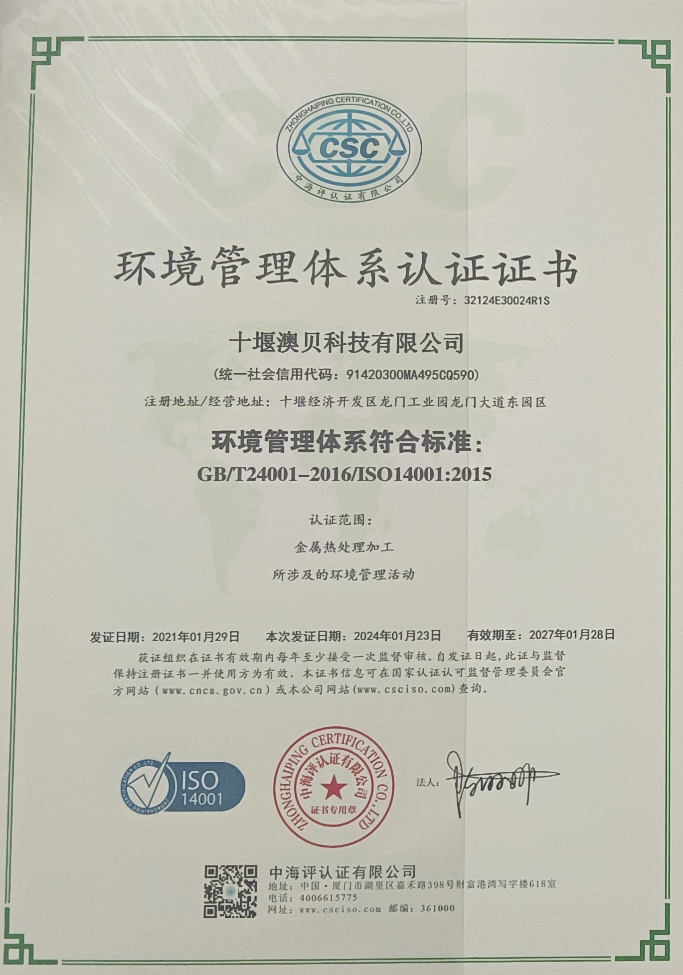 2021年1月首次通过GBT24001-2016/ISO14001-2015体系审核