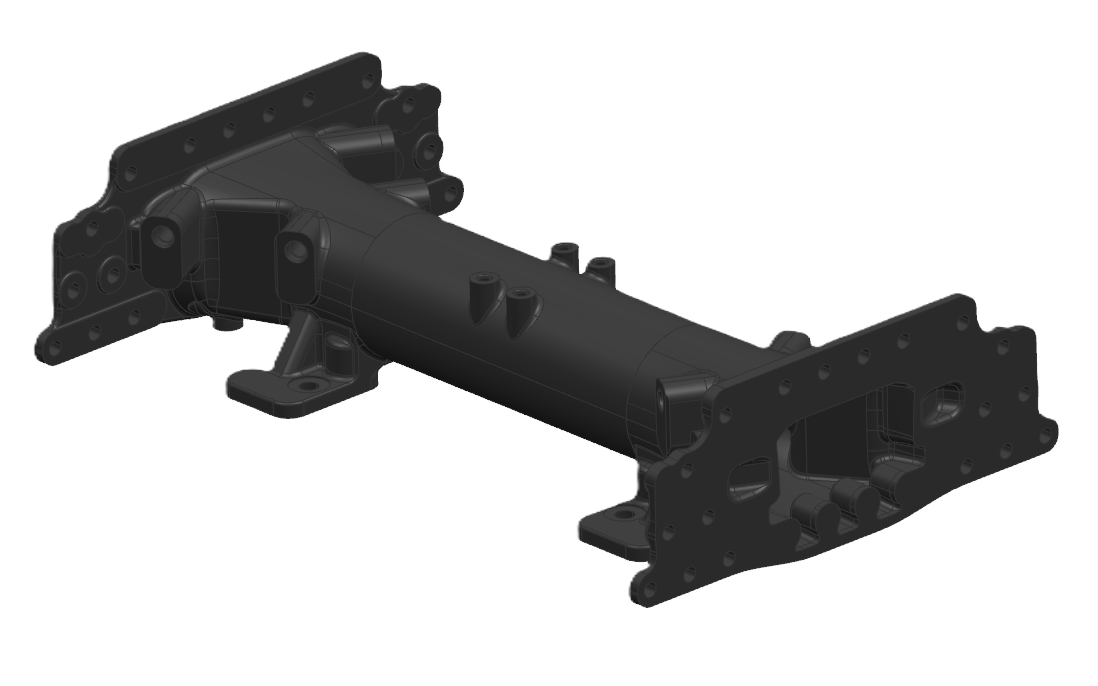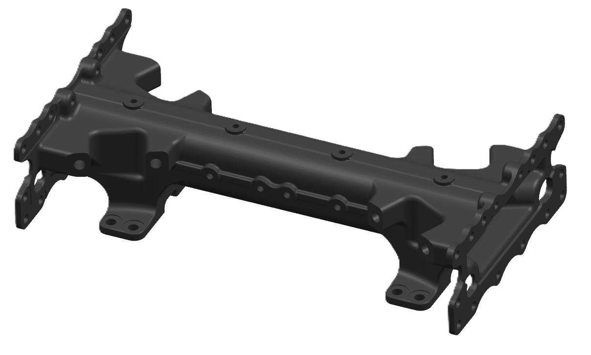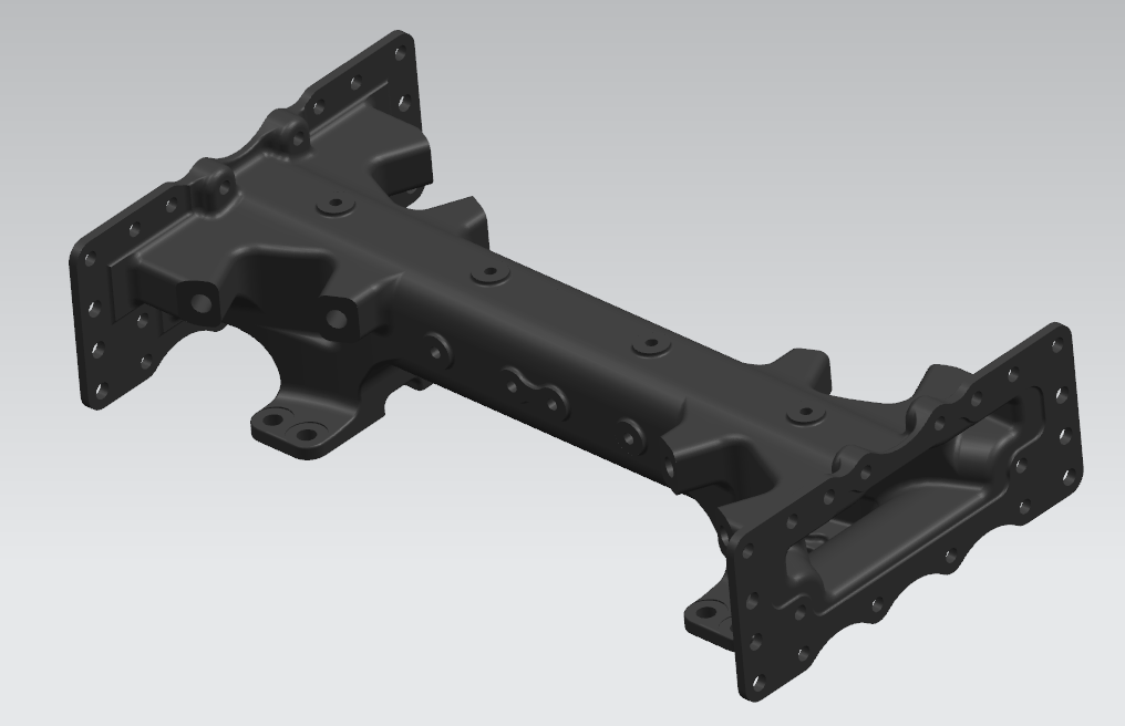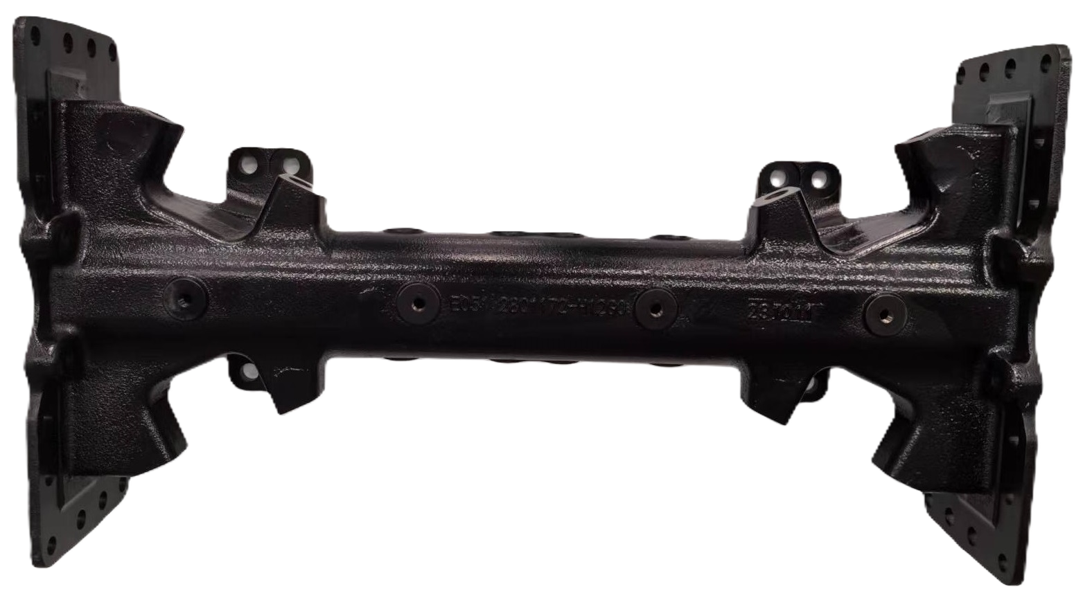 固定车架横梁,减轻车身重量,承受来自车桥、平衡轴支架传递冲击功。
